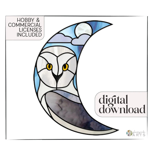 Crescent Moon Snowy Owl Stained Glass Pattern