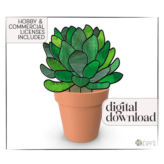 Echeveria Succulent Plant Stem Stained Glass Pattern