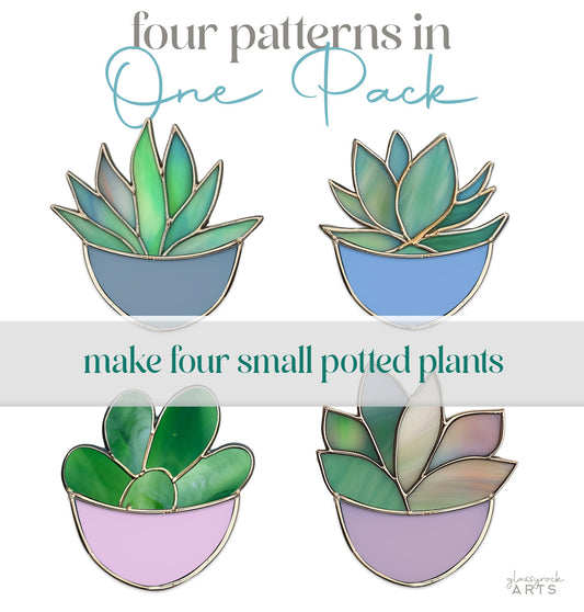 Succulent Ornaments Stained Glass Patterns, 4-Pack