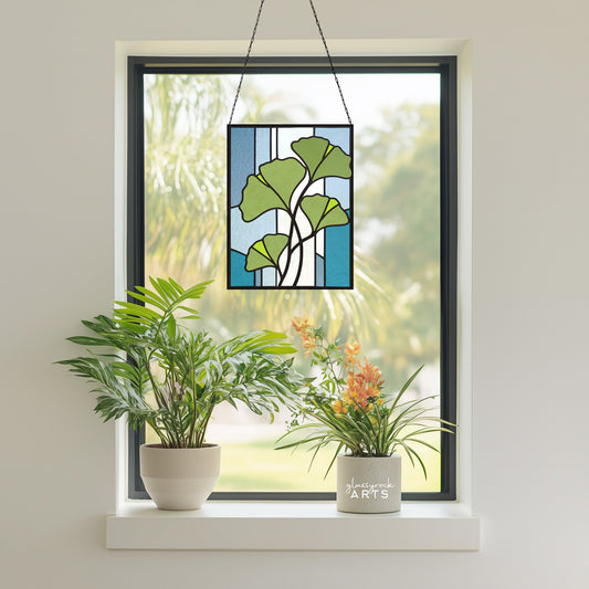 Ginkgo Leaves Prairie Stained Glass Pattern & PNG
