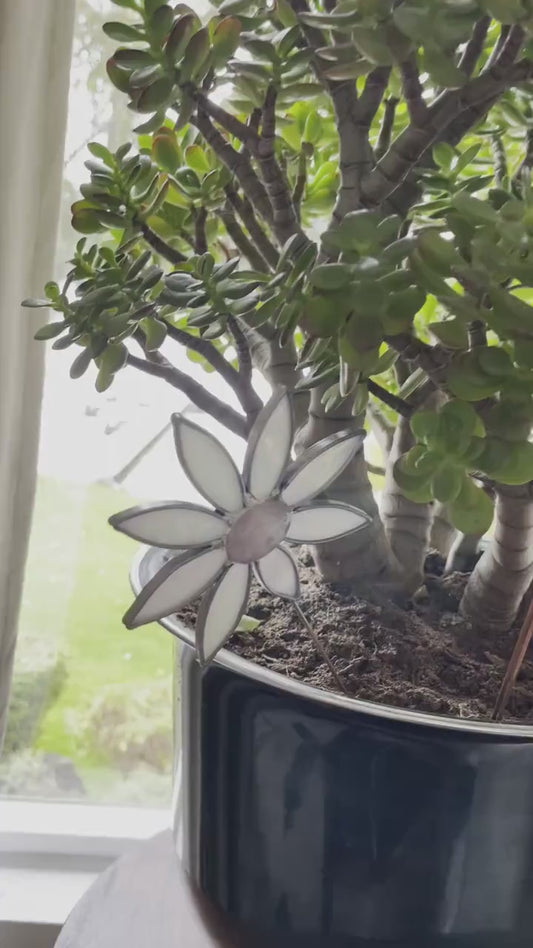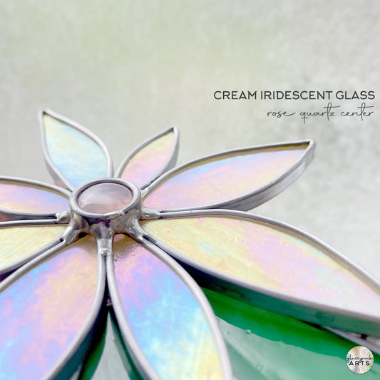 Handmade Stained Glass Flower Plant Stake with Rose Quartz