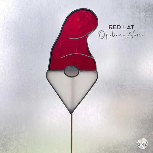 Handmade Stained Glass Gnome Plant Stake - Red Hat
