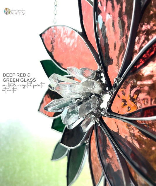 Handmade Stained Glass Flower & Crystal Suncatcher - Giant Poinsettia