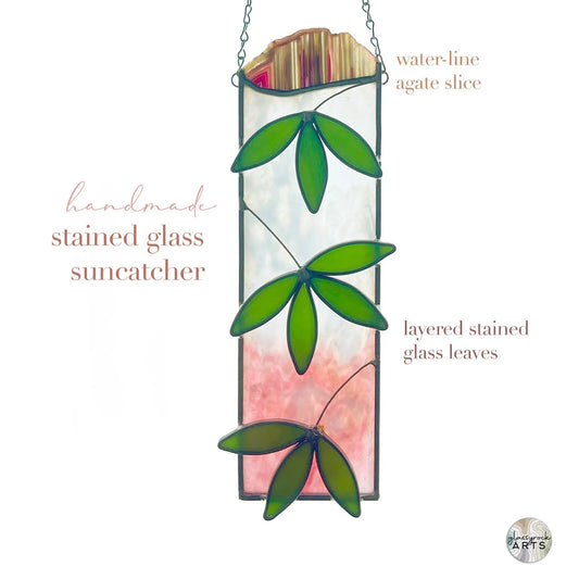 Handmade Agate Tropical Stained Glass Plant Suncatcher