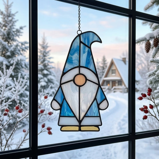 Winter Gnome Stained Glass Pattern and PNG
