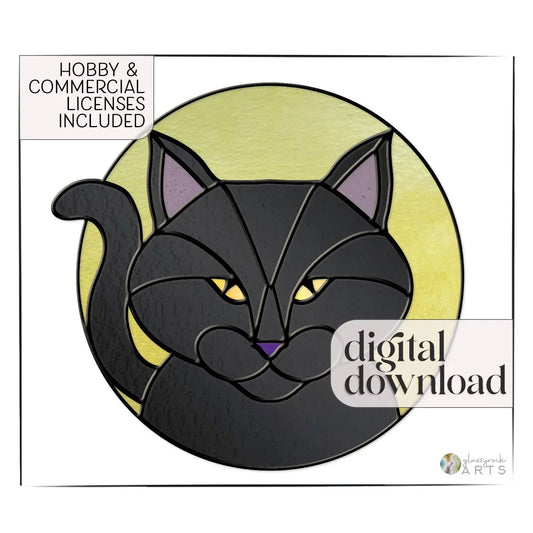 Full Moon Halloween Black Cat Stained Glass Pattern