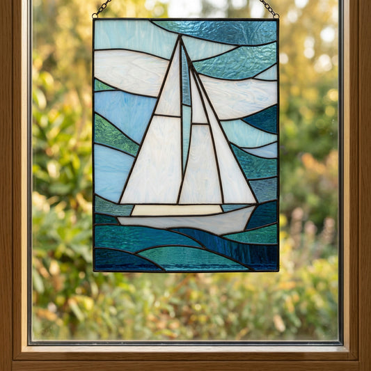 Sailboat Panel Stained Glass Pattern & PNG