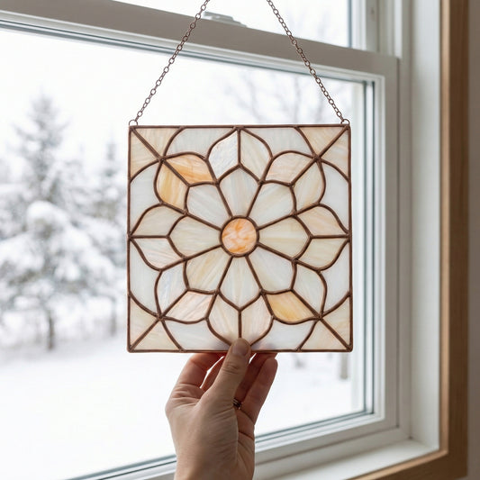 Floral Quilt Square Stained Glass Pattern PDF & PNG