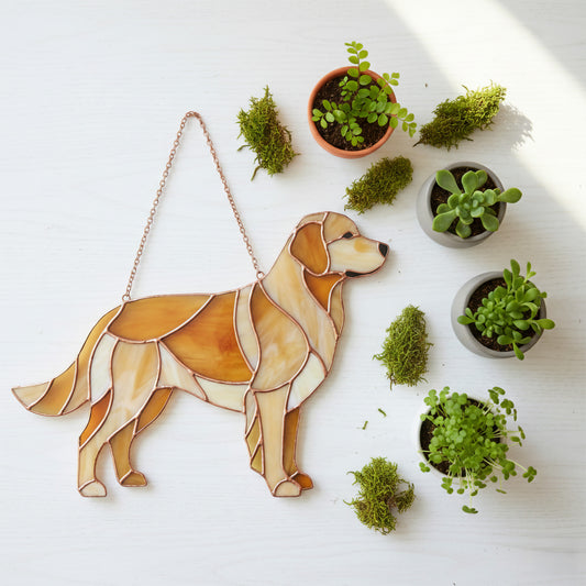 Stained Glass Golden Retriever Suncatcher - Dog Pattern PDF & PNG