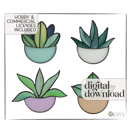 Succulent Ornaments Stained Glass Patterns, 4-Pack