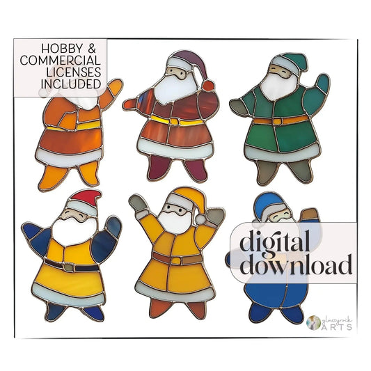 Dancing Santas Stained Glass Pattern Pack of 6