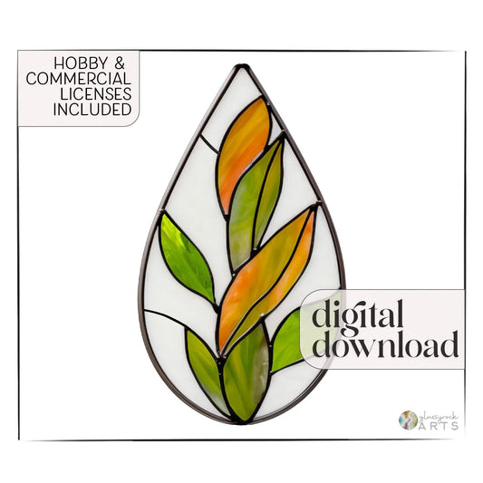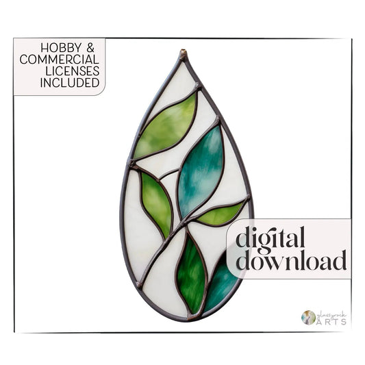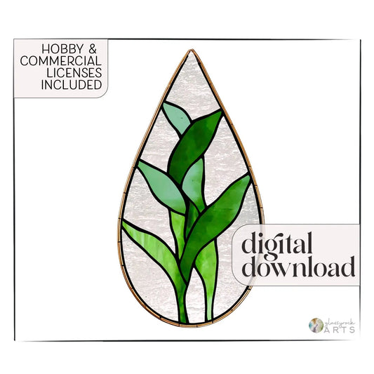 Modern Raindrop Plant Stained Glass Leaves Pattern