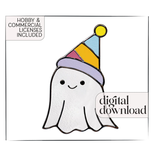 Cute Birthday Ghost Stained Glass Pattern and PNG