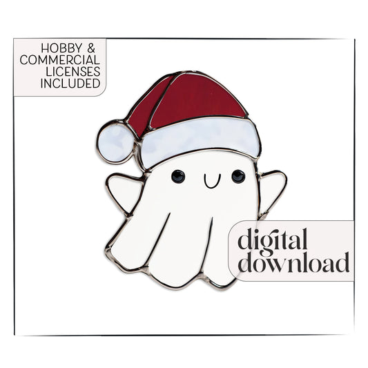 Cute Christmas Ghost Stained Glass Pattern and PNG