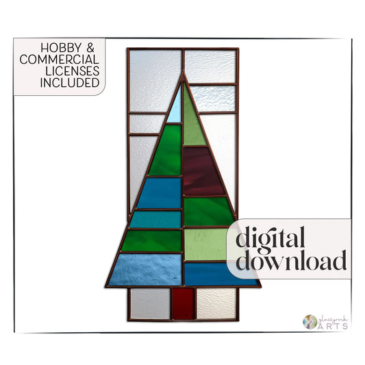 Patchwork Christmas Tree Stained Glass Pattern and PNG