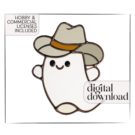 Cute Cowboy Ghost Stained Glass Pattern and PNG