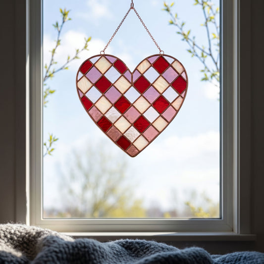 Large Gingham Heart Stained Glass Pattern PDF & PNG