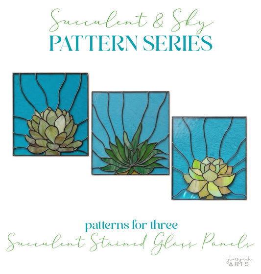Three Succulent Stained Glass Panel Patterns PDF & PNG