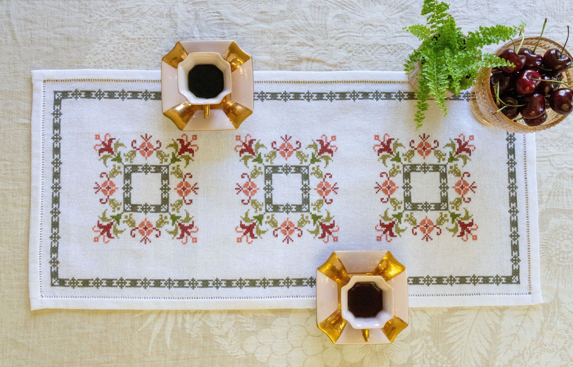 Anthea table runner cross stitch folk embroidery kit