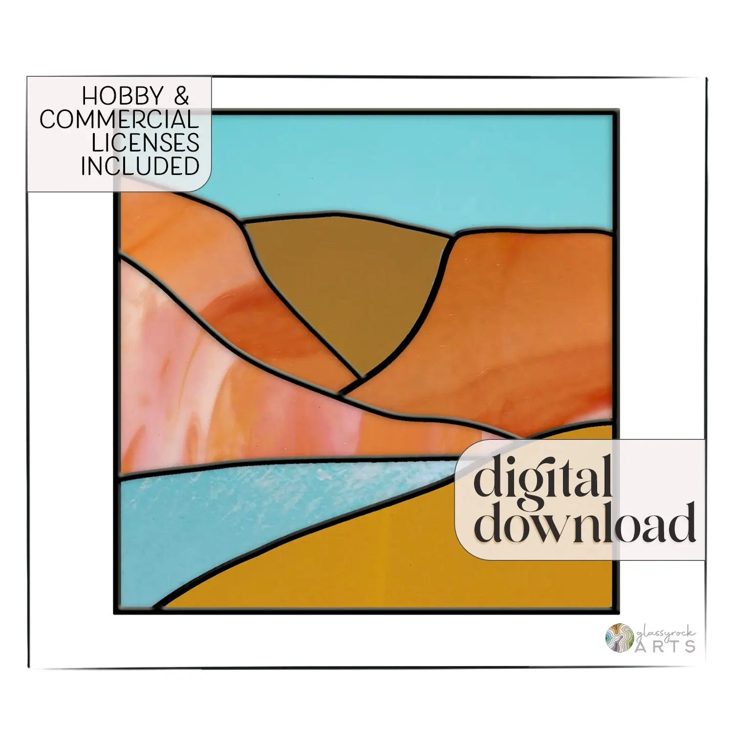 LICENSING: This Beginner Stained Glass download includes both a hobby and commercial license. Patterns cannot be reproduced, published (other than printing for personal use), or shared. If you do sell your finished work, please give a credit to Noelle Barnes/GlassyRock Arts as the designer.