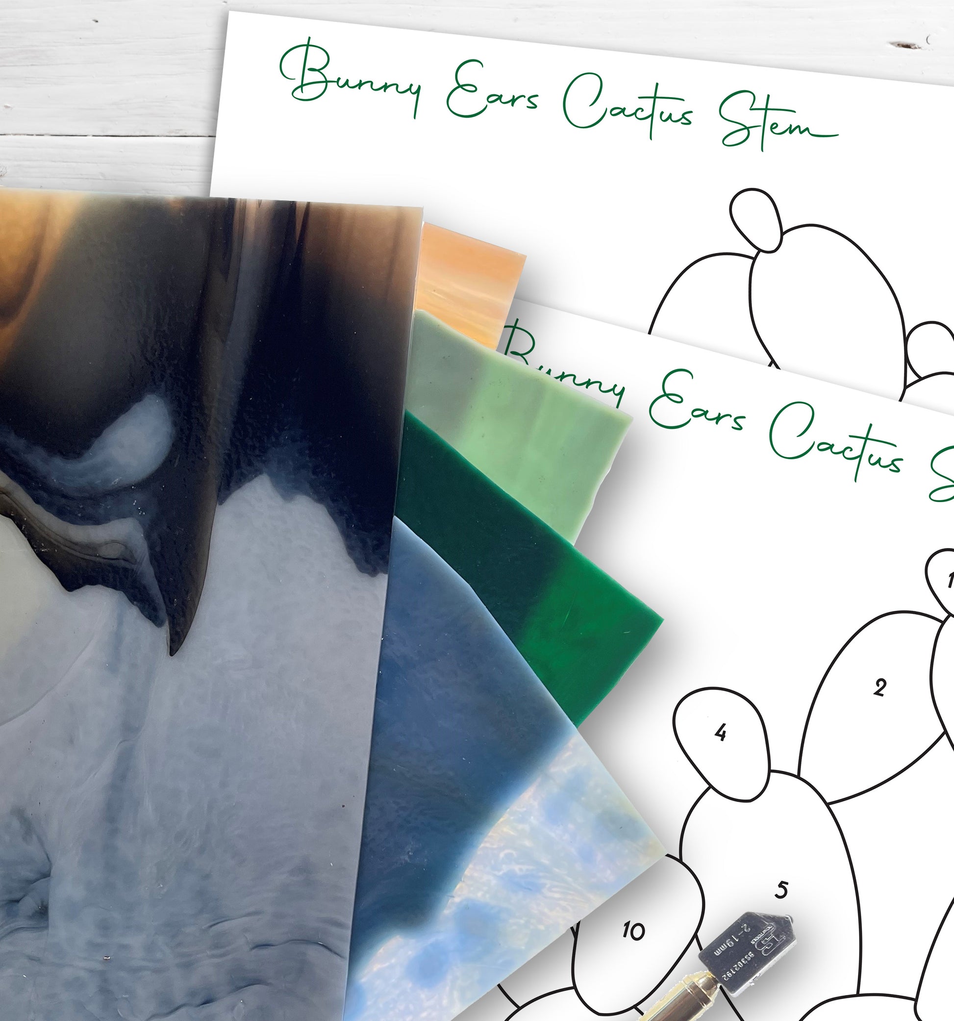 Make your own stained glass cactus! This stained glass plant stake pattern makes a flat glass plant stem. The digital pattern is ready to download, so you can make a glass succulent plant right away.