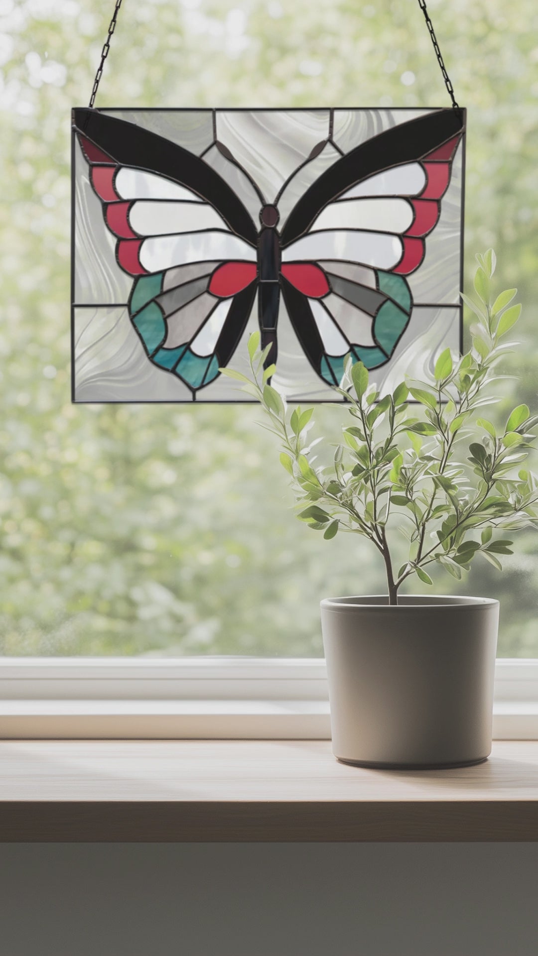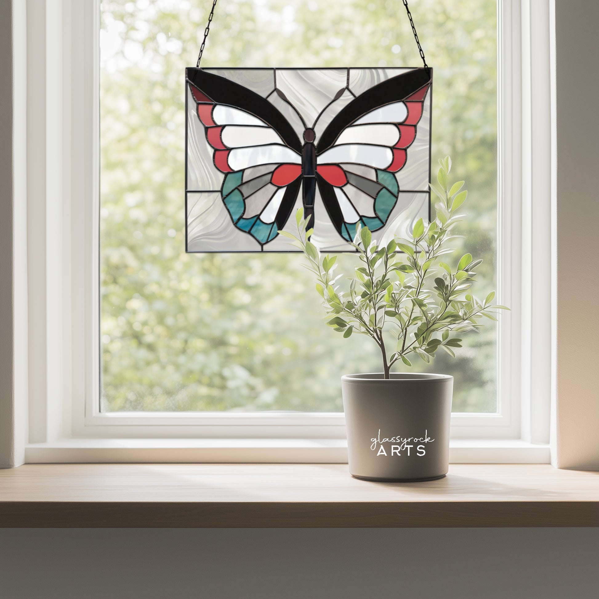 This design for a simple stained glass butterfly sun catcher panel measures 12.5" wide and 9" tall and prints out on 11x17" tabloid-size paper or A3 paper. It's a printable modern style stained glass template for a butterfly, and it's a great way to use up the stash of leftover stained glass pieces you've been collecting. 𝙋𝙖𝙩𝙩𝙚𝙧𝙣 𝙥𝙪𝙧𝙘𝙝𝙖𝙨𝙚 𝙞𝙣𝙘𝙡𝙪𝙙𝙚𝙨 𝙗𝙤𝙩𝙝 𝙖 𝙝𝙤𝙗𝙗𝙮 𝙡𝙞𝙘𝙚𝙣𝙨𝙚 𝙖𝙣𝙙, 𝙖𝙩 𝙣𝙤 𝙚𝙭𝙩𝙧𝙖 𝙘𝙝𝙖𝙧𝙜𝙚, 𝙖 𝙘𝙤𝙢𝙢𝙚𝙧𝙘𝙞𝙖𝙡 𝙡𝙞𝙘𝙚𝙣𝙨𝙚, 𝙨𝙤 𝙮𝙤𝙪 𝙘𝙖𝙣 𝙨𝙚𝙡𝙡 𝙬𝙝𝙖𝙩𝙚𝙫𝙚𝙧 𝙮𝙤𝙪 𝙢𝙖𝙠𝙚 𝙛𝙧𝙤𝙢 𝙩𝙝𝙚 𝙥𝙖𝙩𝙩𝙚𝙧𝙣. 𝘿𝙚𝙩𝙖𝙞𝙡𝙨 𝙗𝙚𝙡𝙤𝙬. This listing includes both a PDF pattern and a PNG for Cricut, Silhouette and other cutting machines.