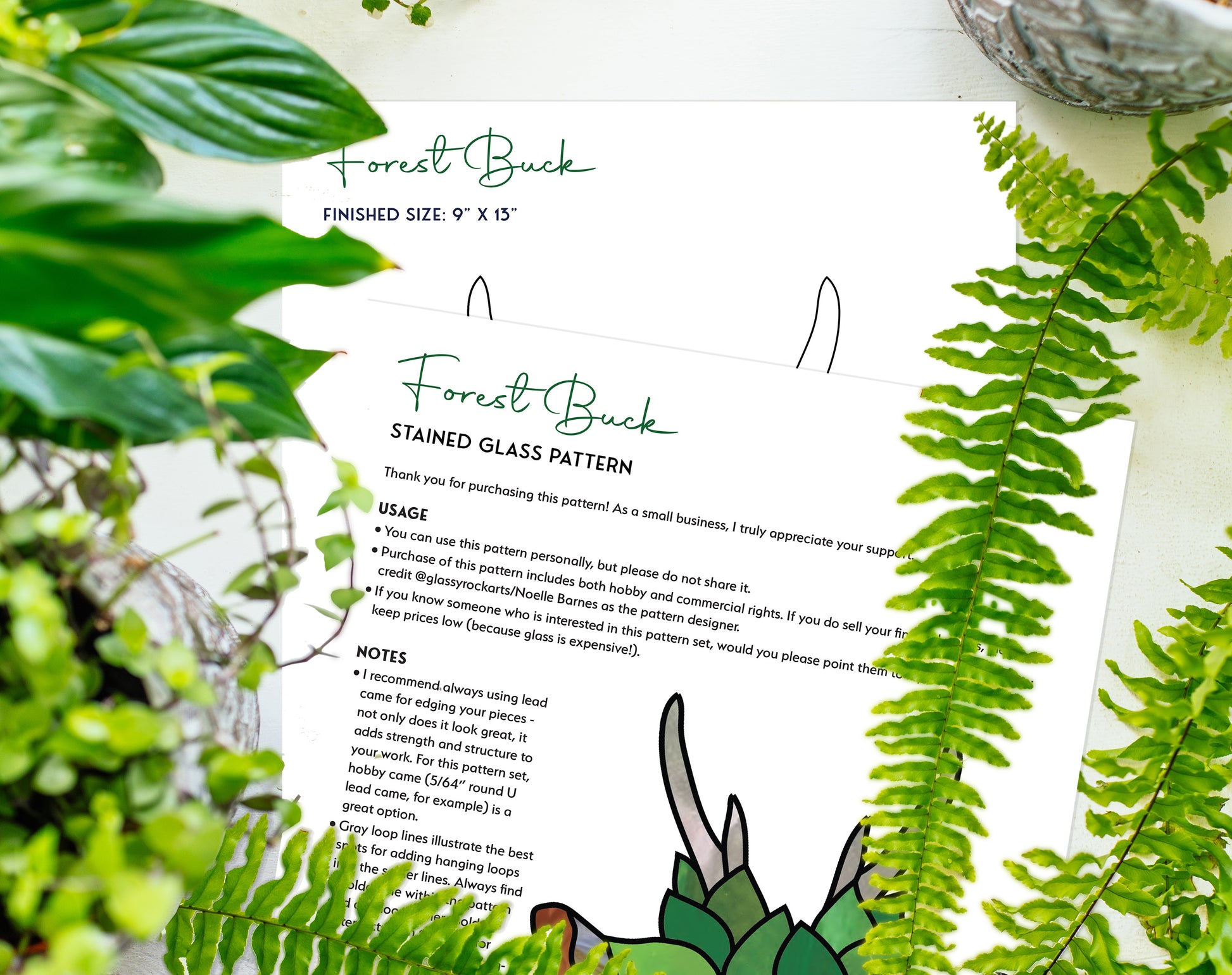 ITEM: This listing is for a *digital stained glass pattern* and contains two different versions of the pattern - one is numbered, and one is clean, without numbering. Make your own forest buck! It's a DIY stained glass pattern for deer art. This will print out on 11 x 17" paper (or two 8.5x11" sheets).