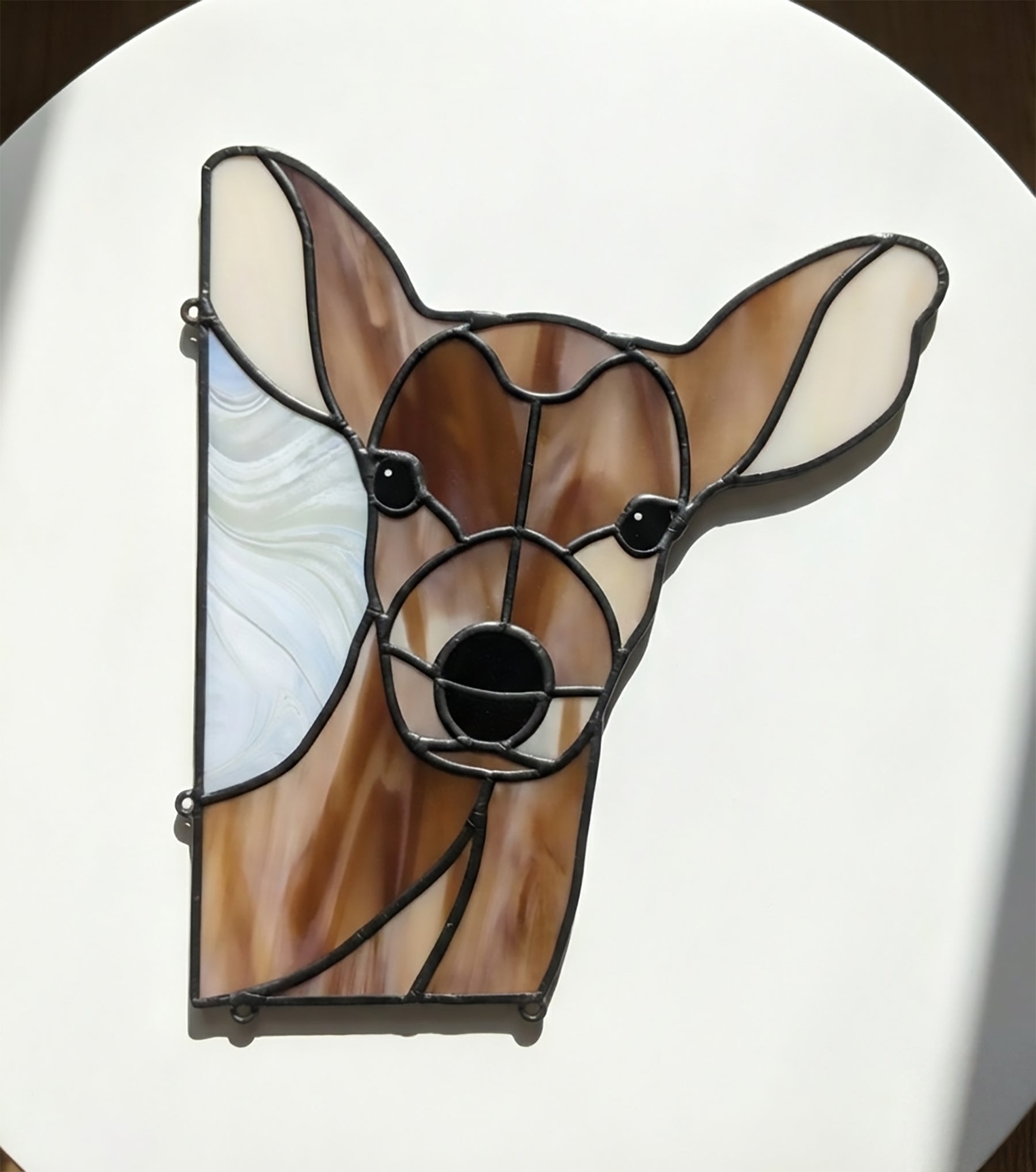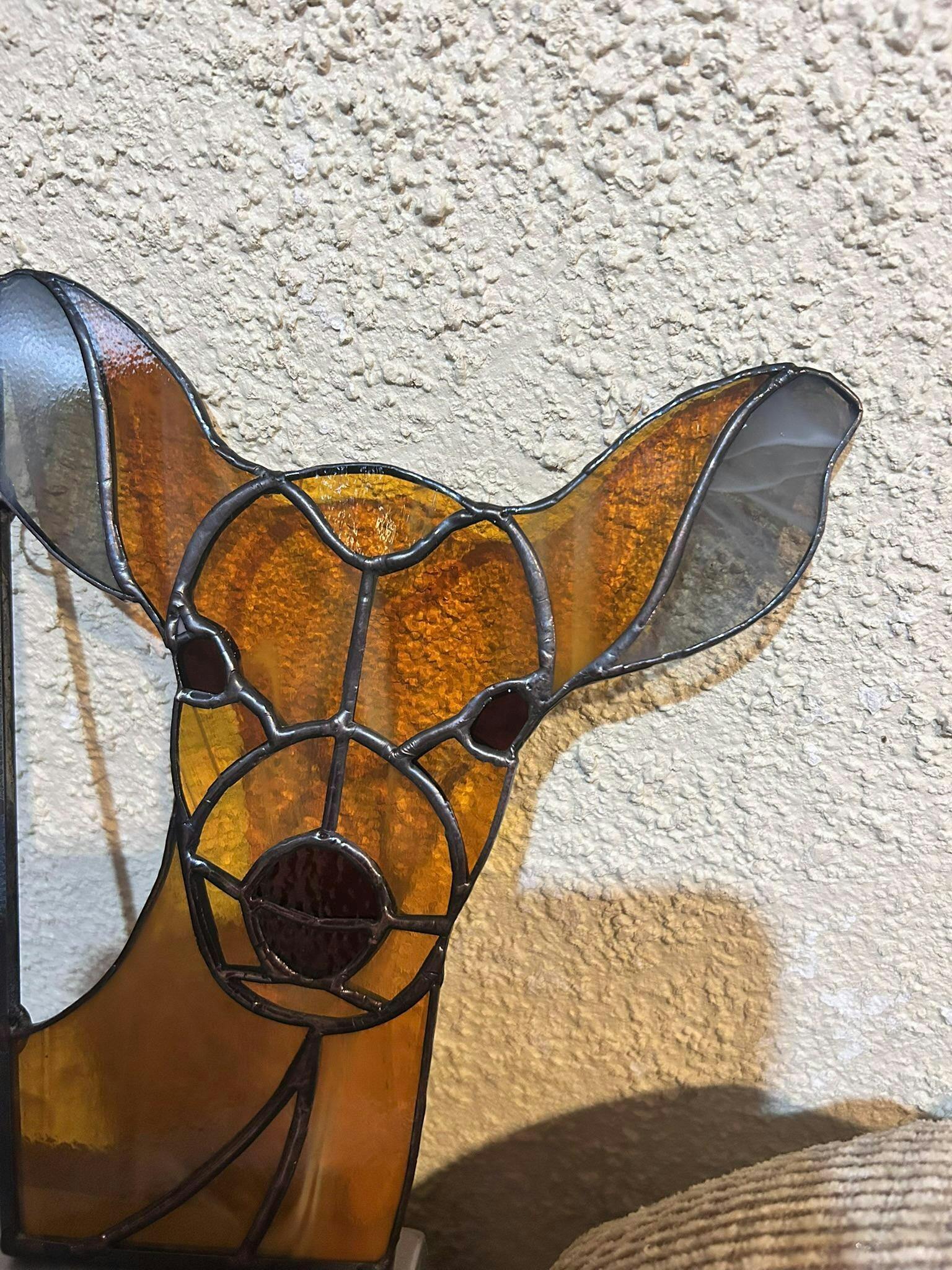 This adorable deer stained glass light catcher will pop up from the corner of a window frame and peek inside - the pattern is an instant download, ready for you to make. The deer suncatcher can be attached to the window frame with stick-on hooks, screws, or nails, depending on what your frame is made from.