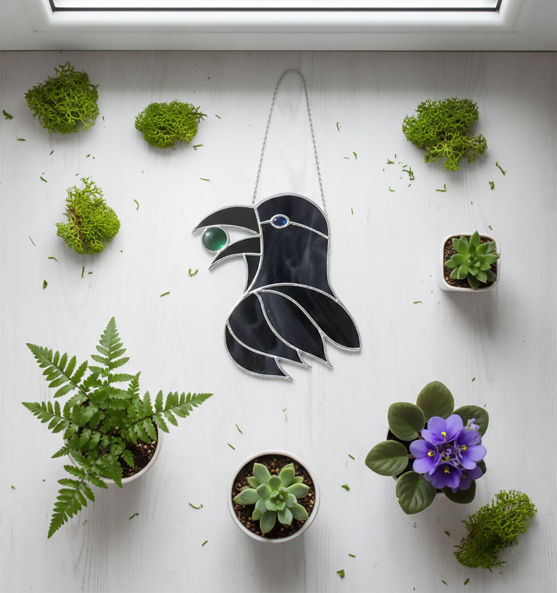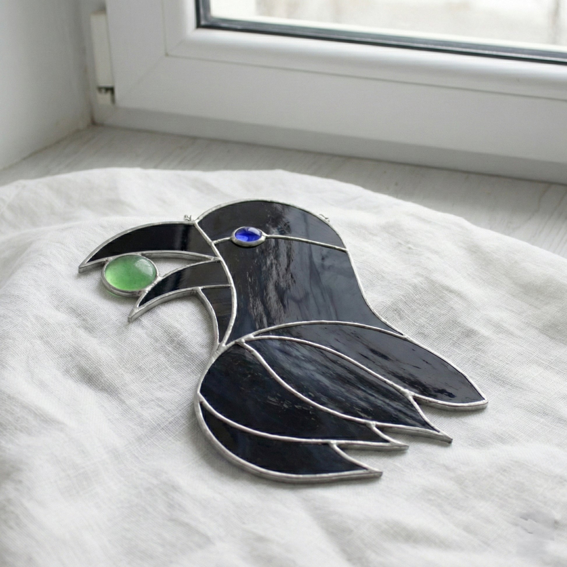 ITEM: This listing is for a *digital stained glass pattern* and contains two different versions of the pattern - one is numbered, and one is clean, without numbering. Make your own stained glass crow suncatcher! It's a DIY stain glass pattern for crow glass art. This is a digital pattern to download and will print out on 8.5 x 11" paper.