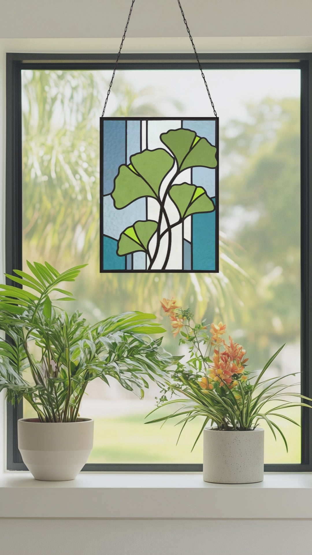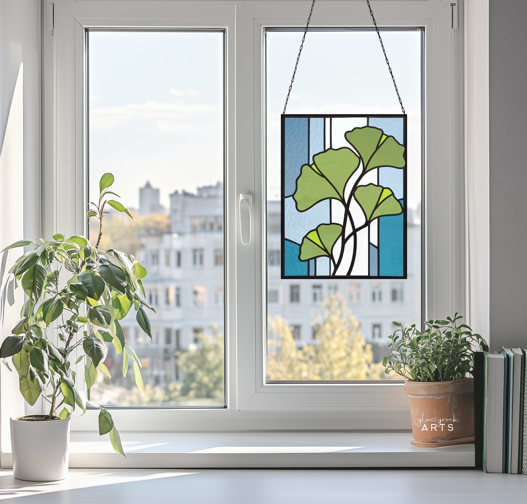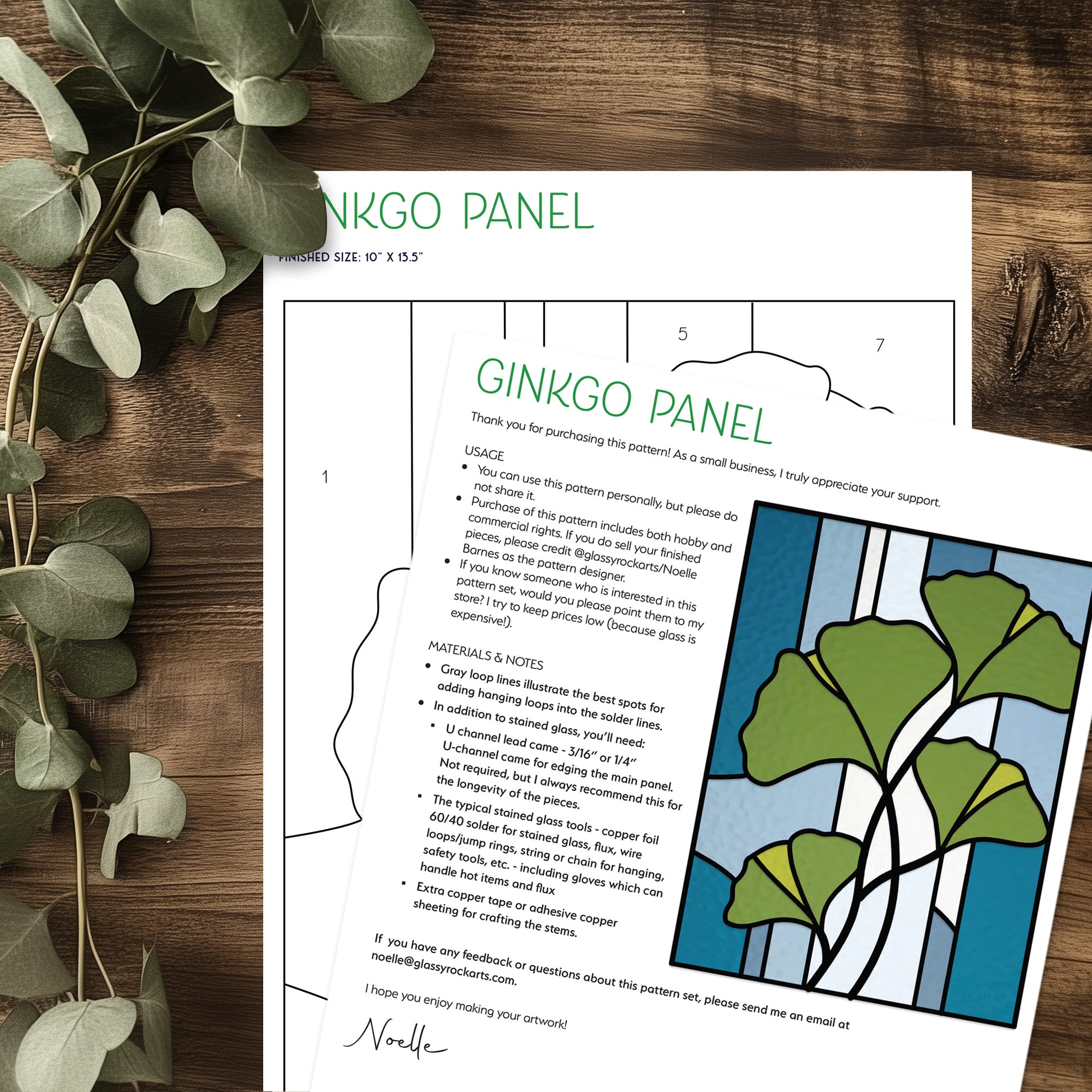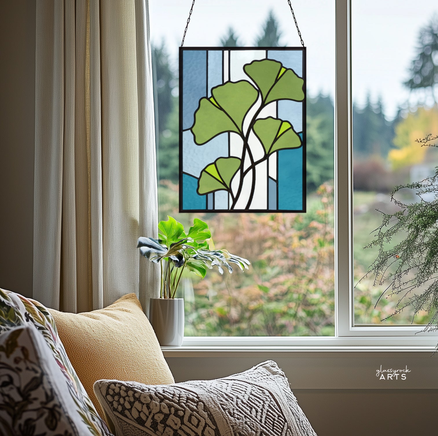 Ginkgo Leaves Prairie Stained Glass Pattern & PNG