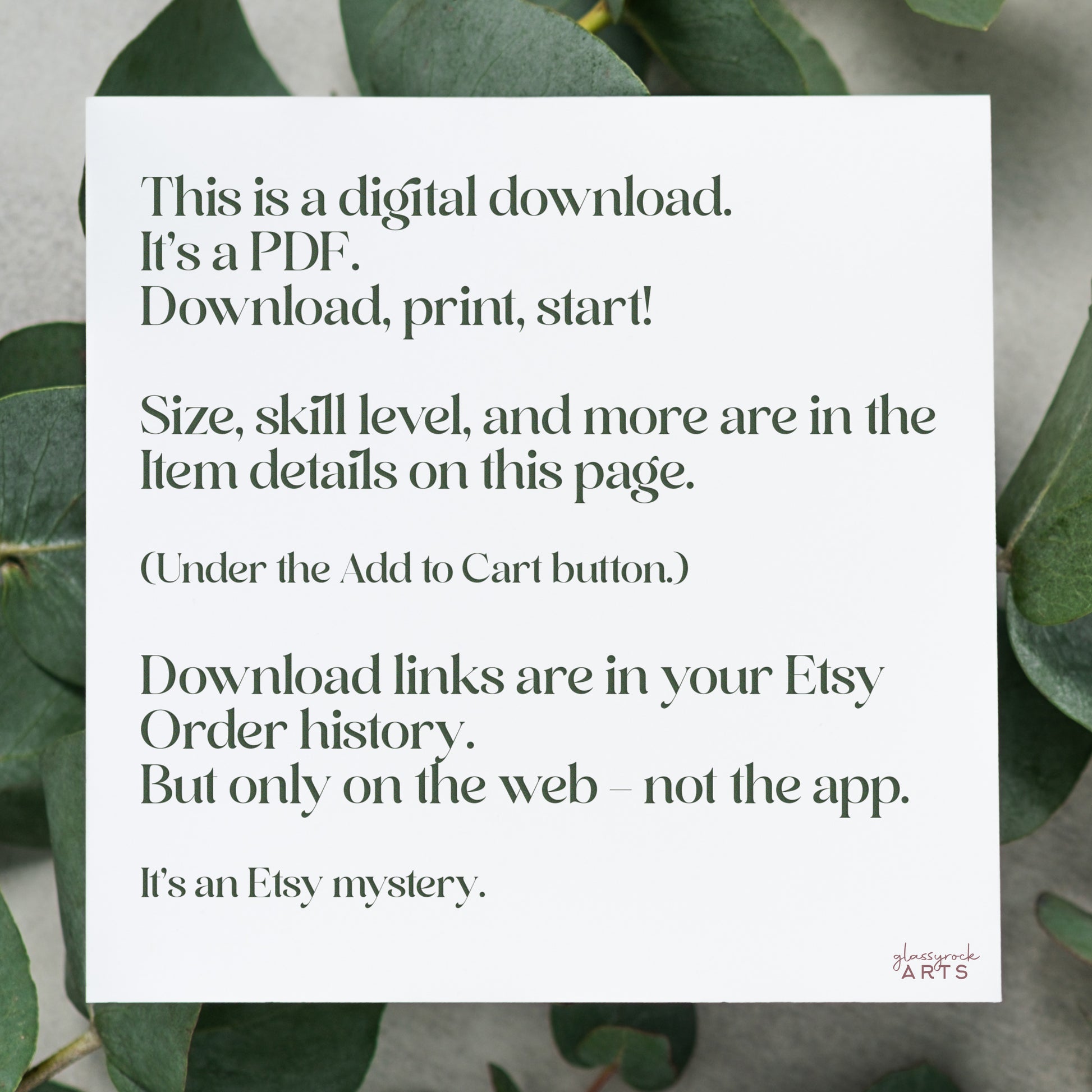 ITEM: This listing is for a *digital pattern download* and contains two versions of the pattern - one that will hang from the left and one that will hang from the right. Each of those has a numbered version and a clean version. There are FIVE pages in total and instructions are included for adding the eyes and nose details, and for hanging.