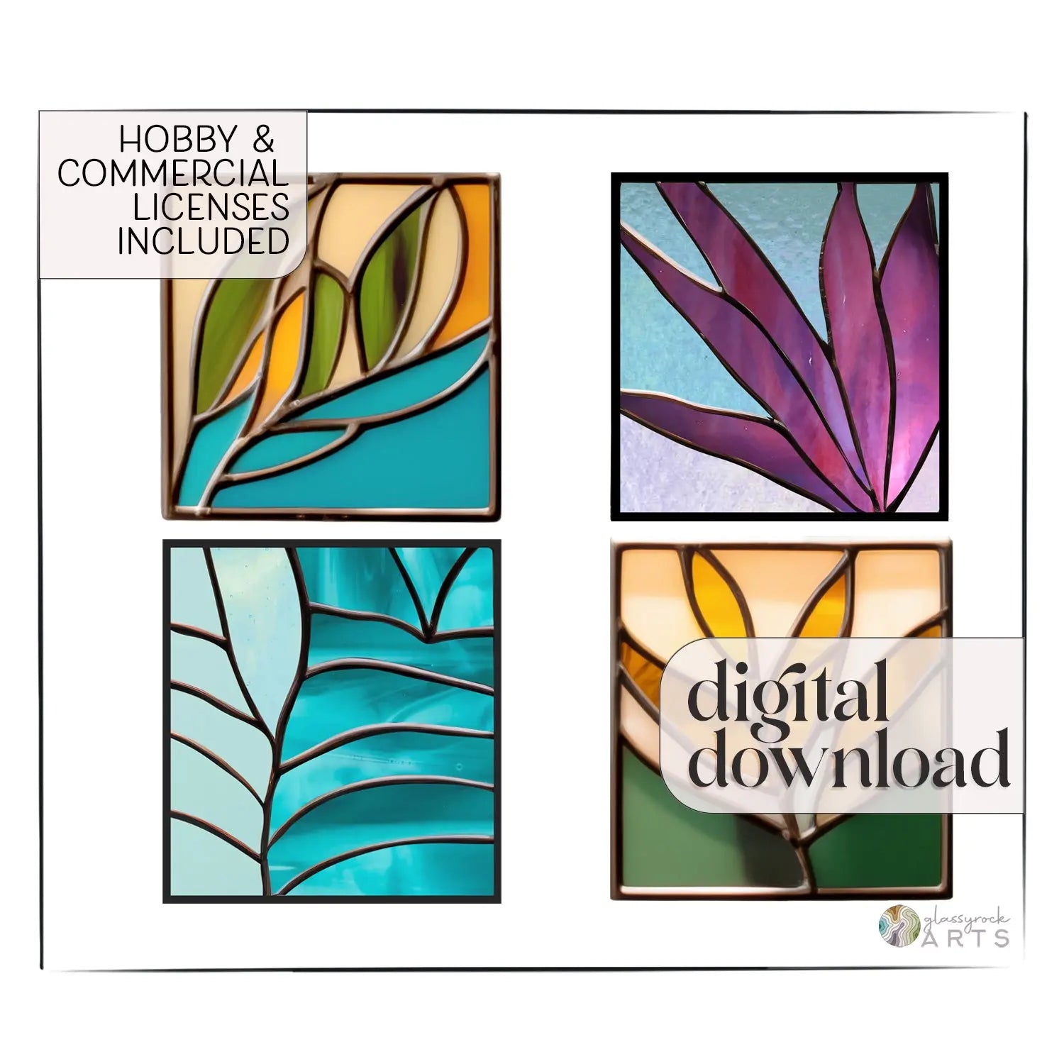 Modern Leaves Stained Glass Plant Pattern 4-Pack