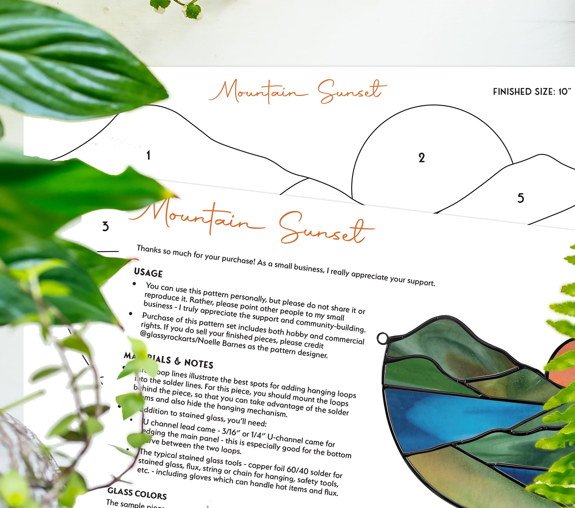 LICENSING: This Beginner Stained Glass download includes both a hobby and commercial license. Patterns cannot be reproduced, published (other than printing for personal use), or shared. If you do sell your finished work, please give a credit to Noelle Barnes/GlassyRock Arts as the designer.