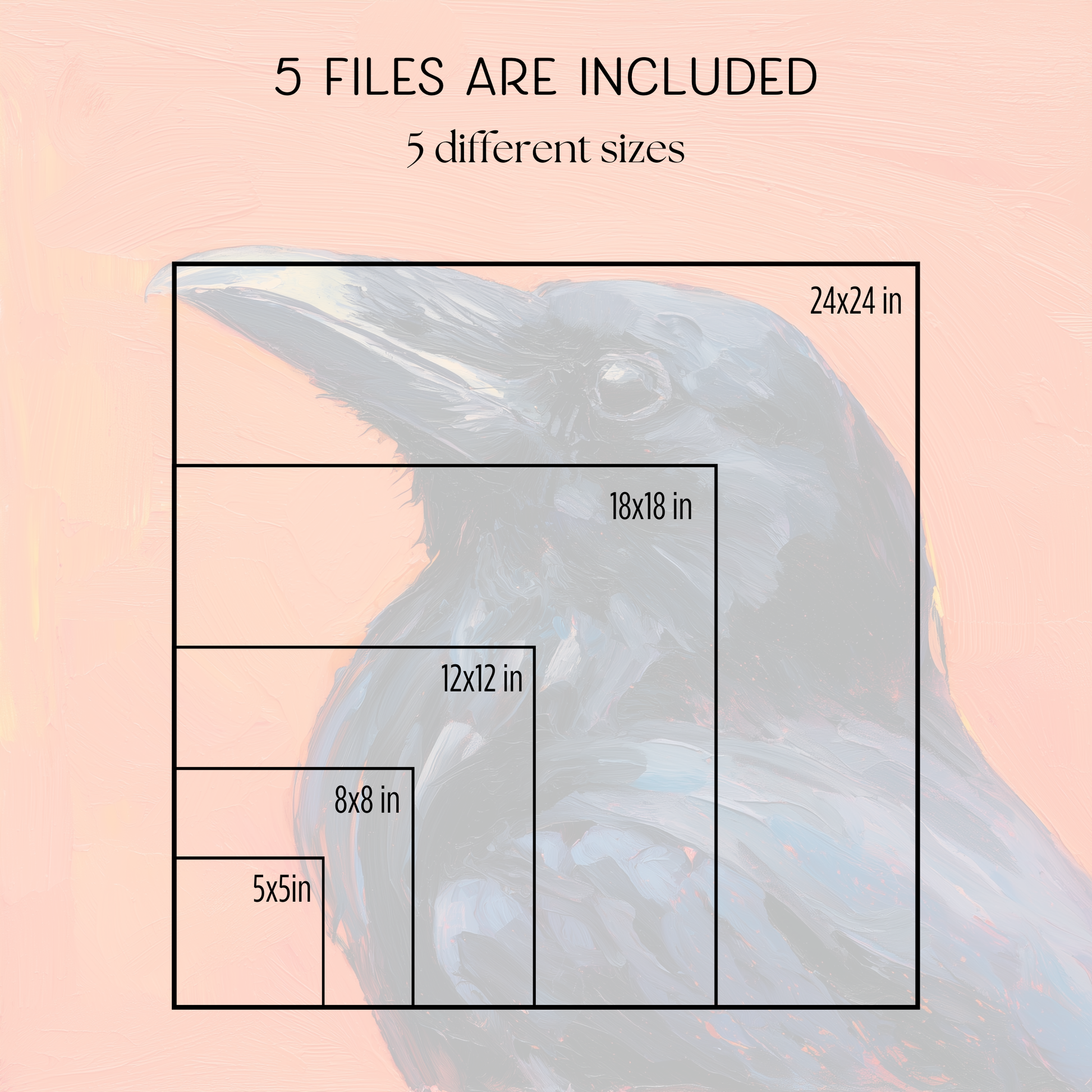 Halloween Printable Raven Wall Art, Original Artwork with 5 Sizes Included, Instant Digital Download for Halloween, Printable Square Art