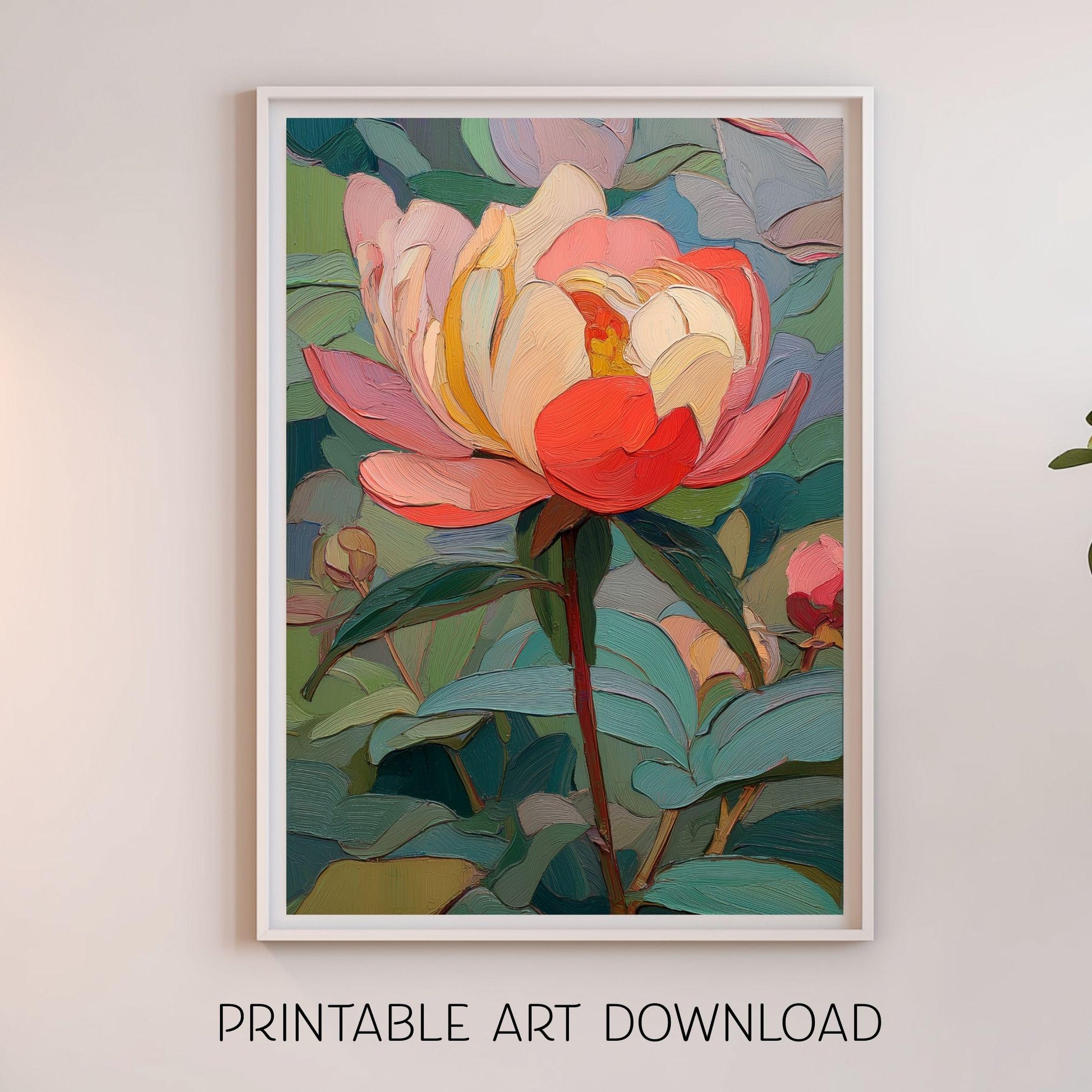 Vivid Peony Flower Painting: Printable Floral Wall Art (Digital Download)