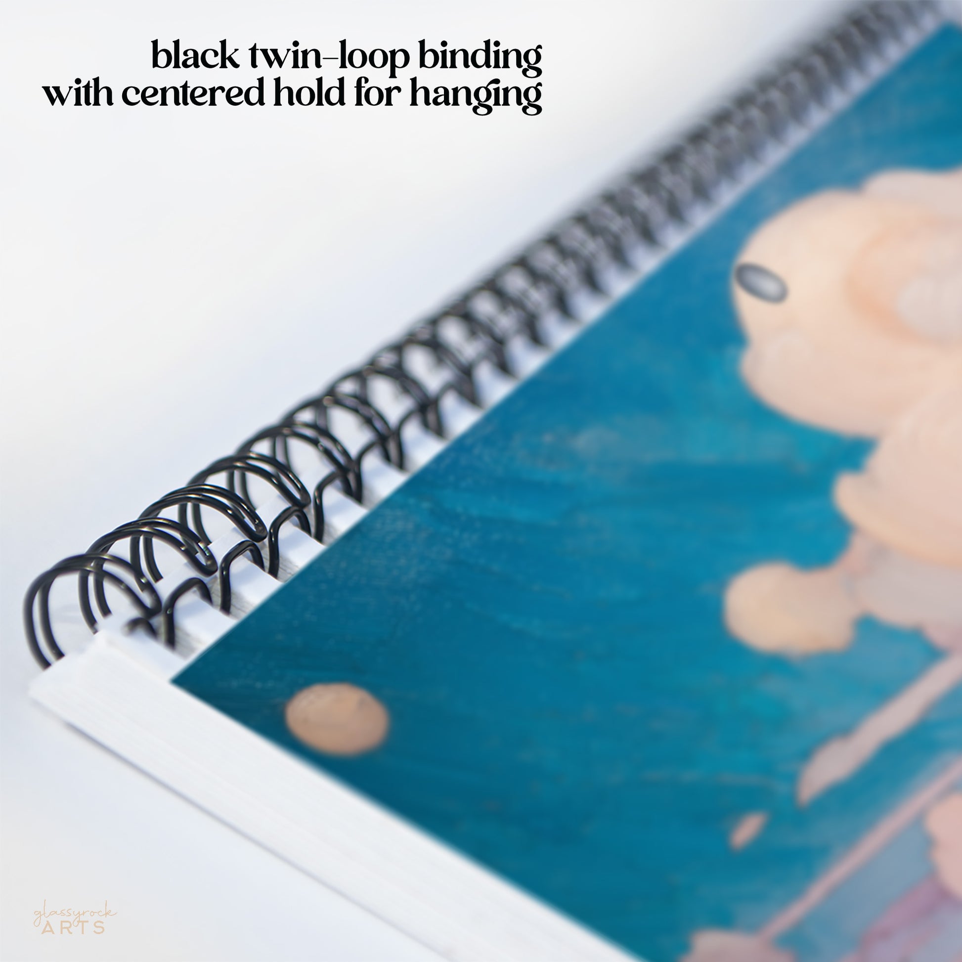 Each page includes a detailed river scene designed in a painterly, impressionist style. Bound with black twin-loop wire and ready to hang with a centered hole near the top. Sized for narrow wall spaces, hallways, offices, or anywhere you want a peaceful moment.