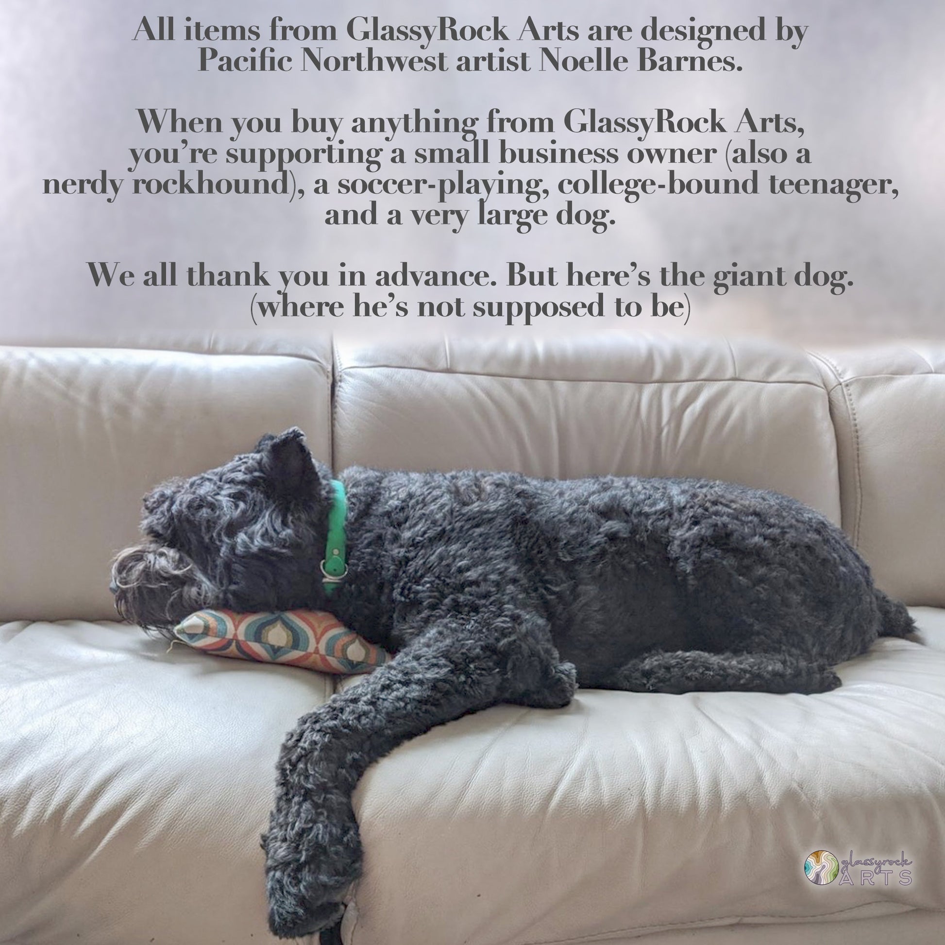 All artwork and patterns on the GlassyRock Arts website are hand-made and hand-drawn by Pacific Northwest artist Noelle Barnes. Follow me on Instagram at @glassyrockarts for artwork and @modernstainedglasspatterns for patterns to see when new patterns are released, or sign up for my infrequent and not-at-all-spammy newsletter.