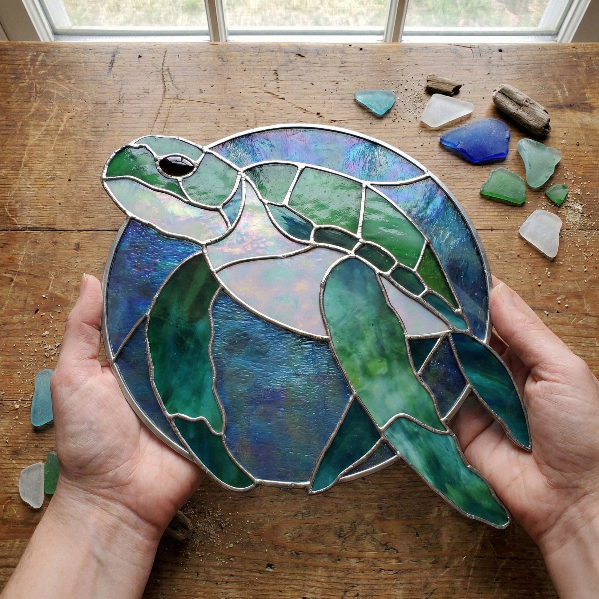 Round Stained Glass Turtle Pattern PDF & PNG