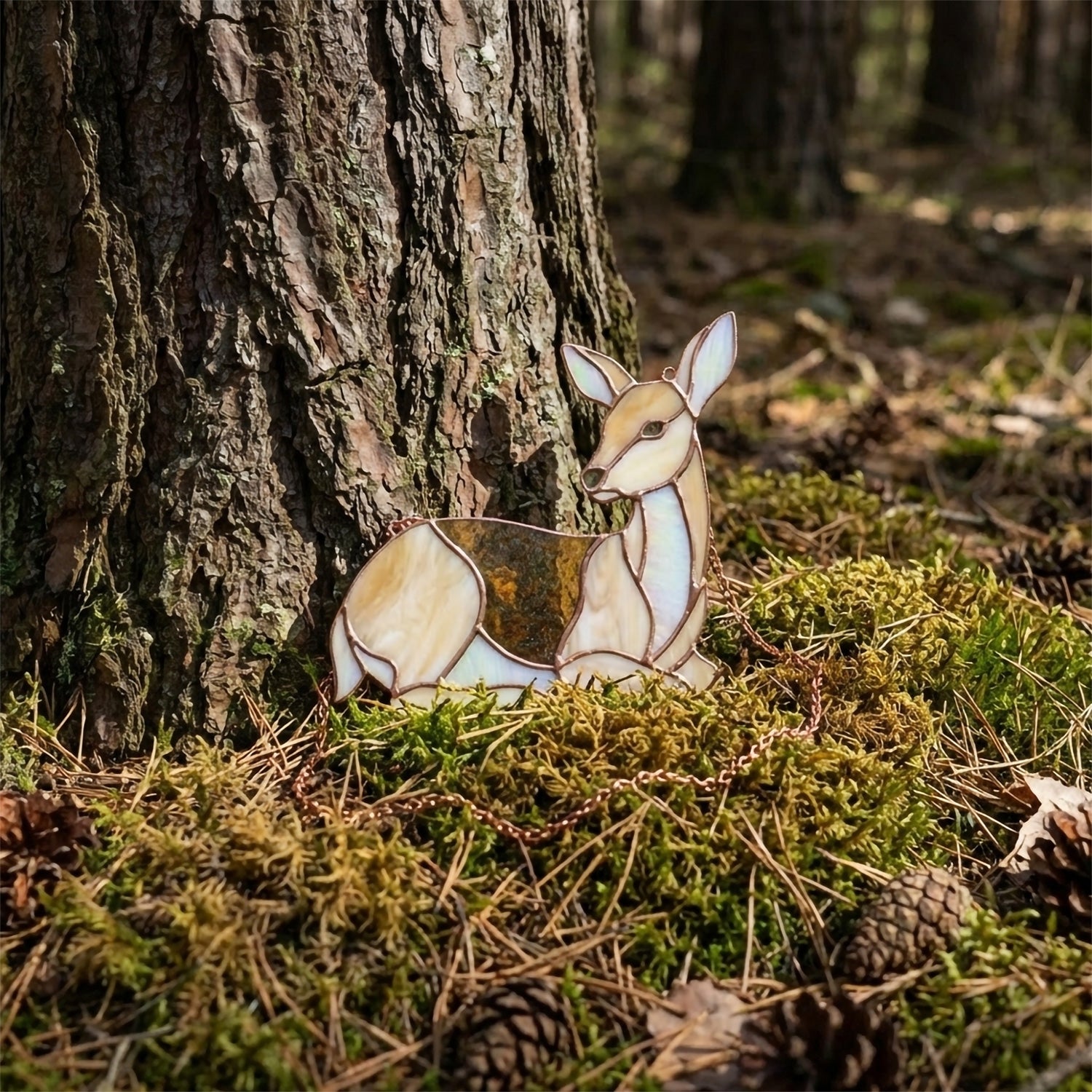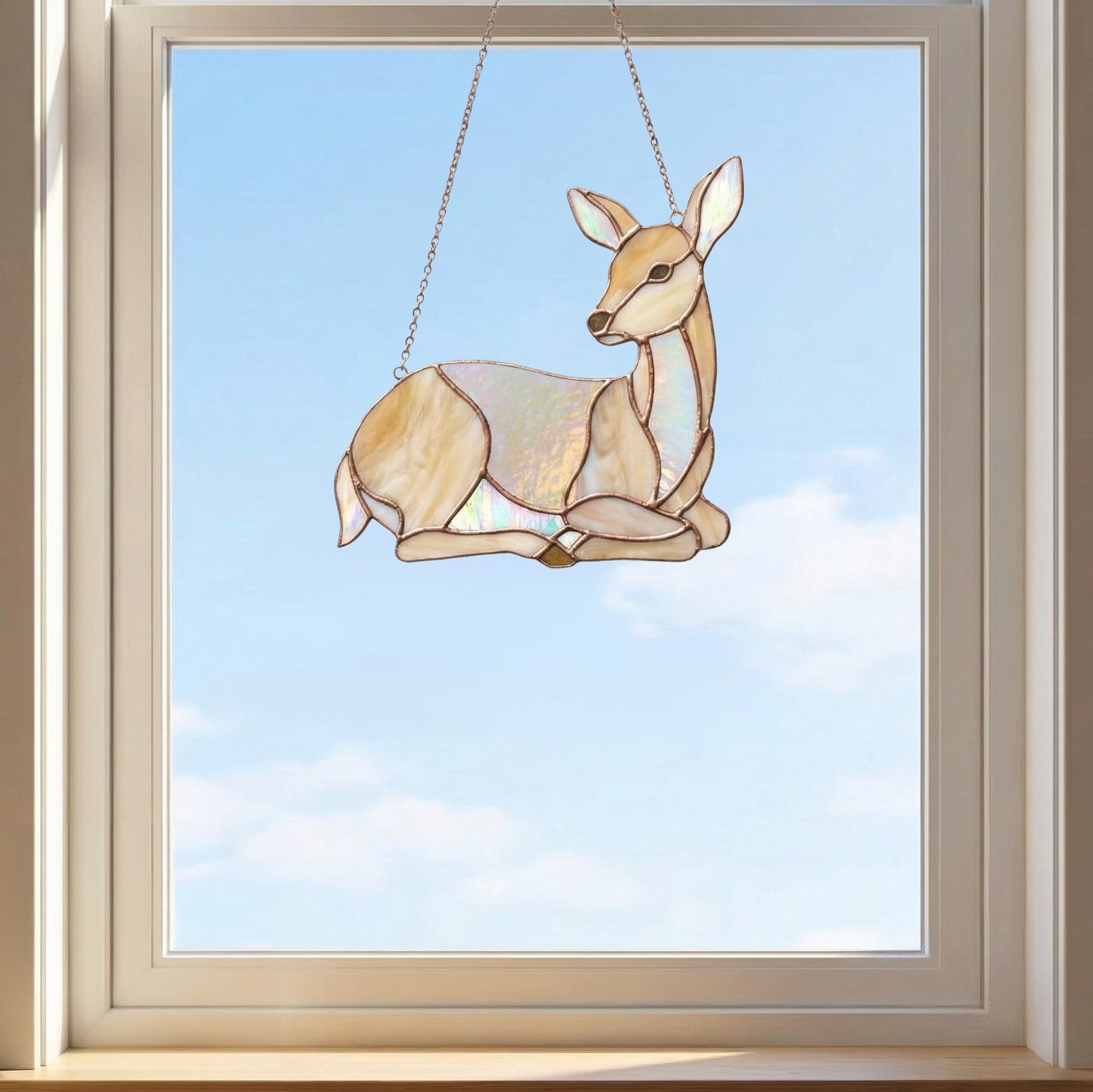 This lovely seated doe stained glass light catcher is so fun to make - the pattern is an instant download, ready for you to make. This listing includes both a PDF pattern and a PNG for Cricut, Silhouette and other cutting machines. It measures 10.5" by 10.5" when completed, and prints out on tabloid-sized, 11x17" or A3 paper.