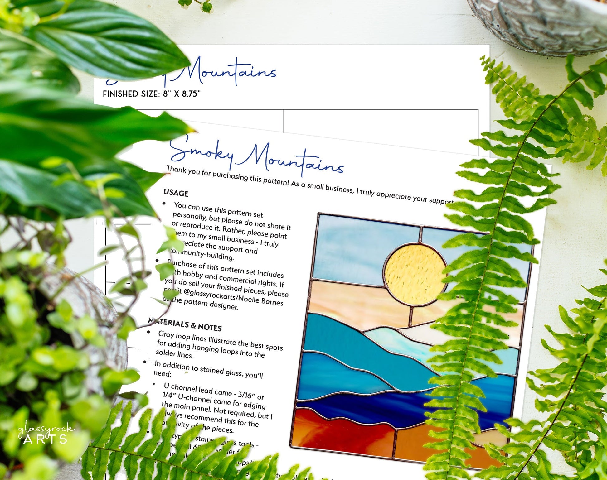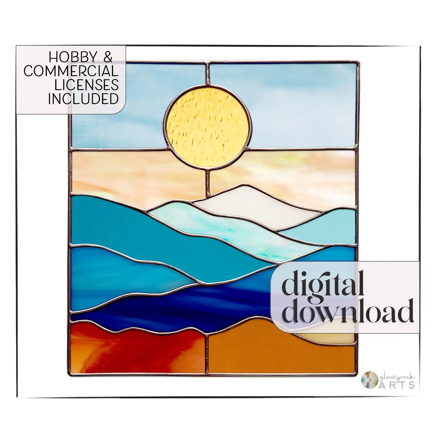 LICENSING: This Beginner Stained Glass download includes both a hobby and commercial license. Patterns cannot be reproduced, published (other than printing for personal use), or shared. If you do sell your finished work, please give a credit to Noelle Barnes/GlassyRock Arts as the designer.