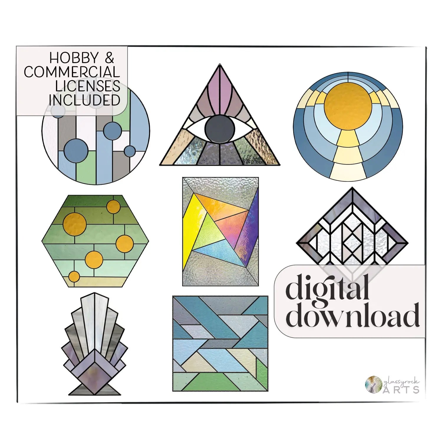 Modern Geometric Stained Glass Patterns Value 8-Pack