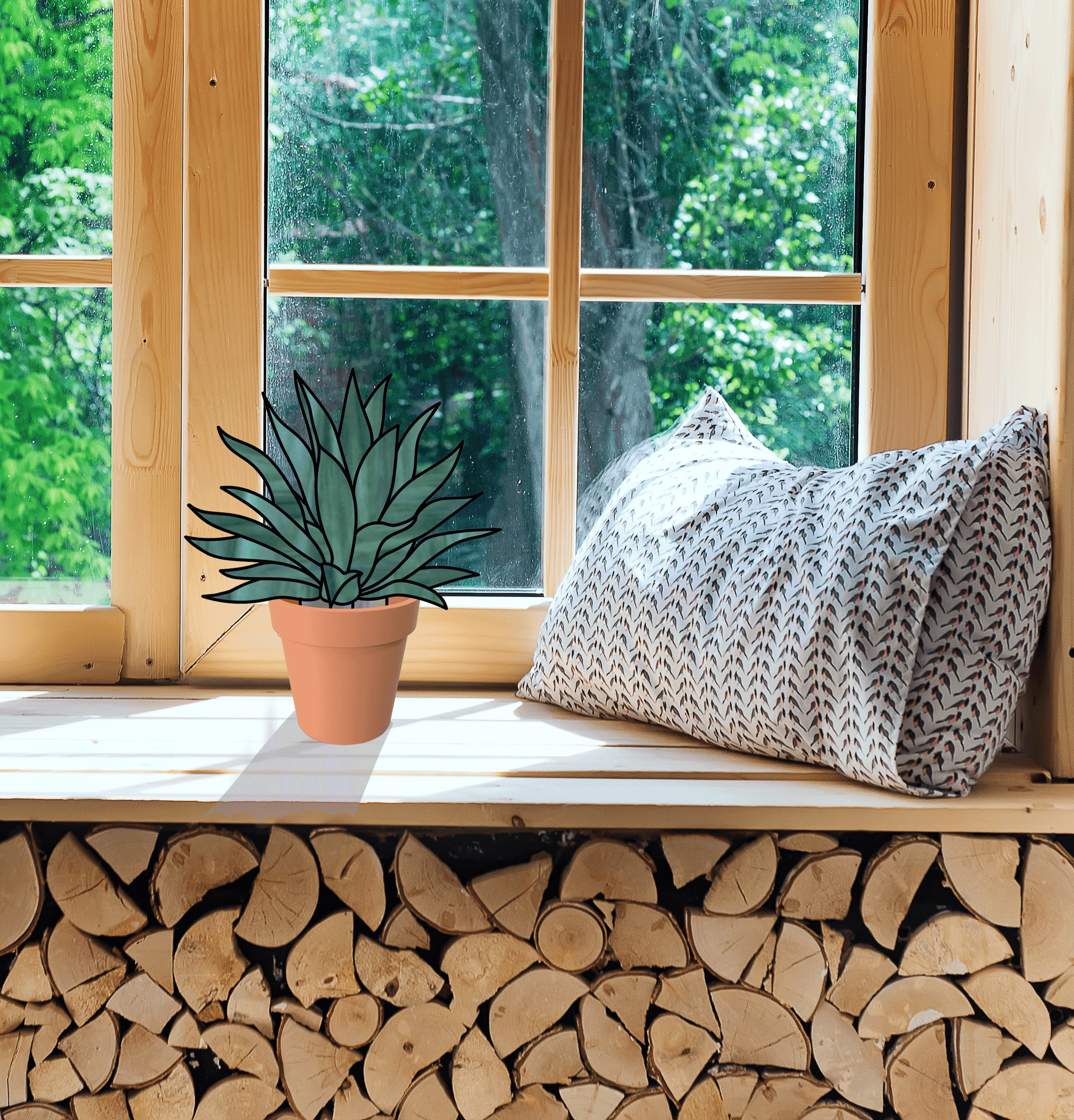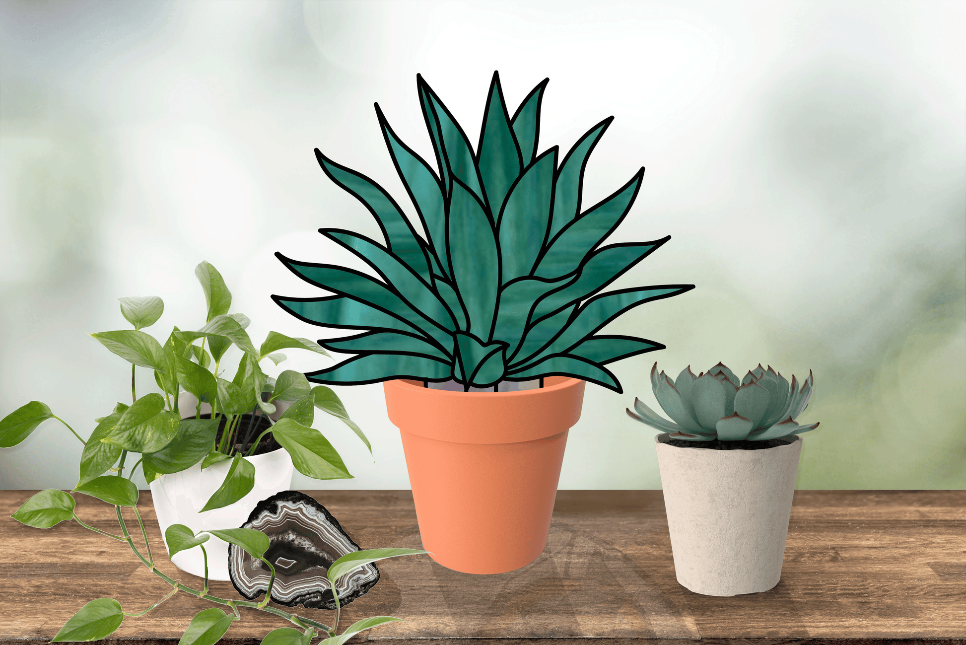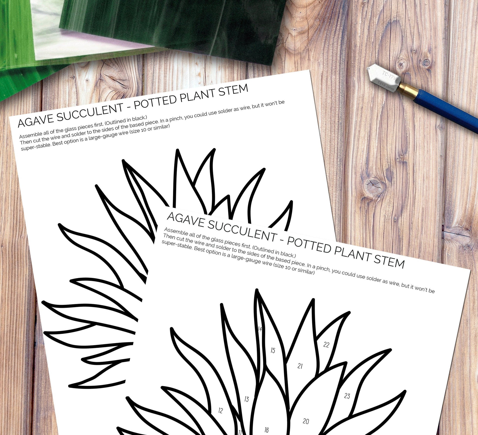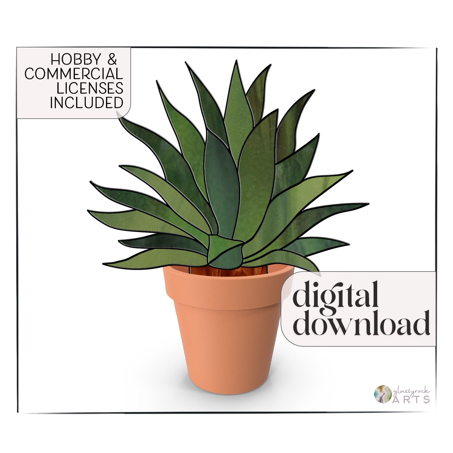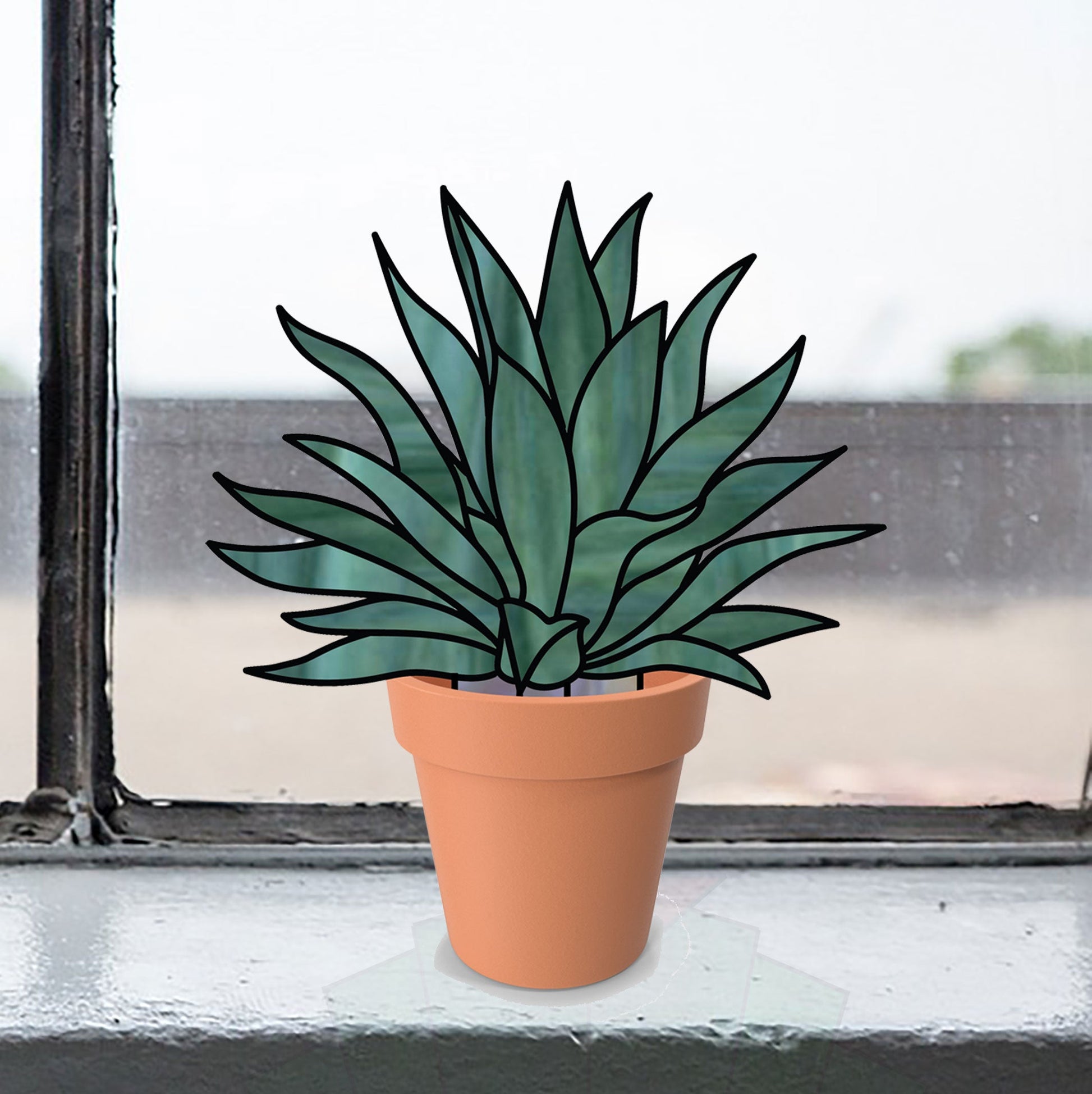 Agave Succulent Plant Stem Stained Glass Pattern