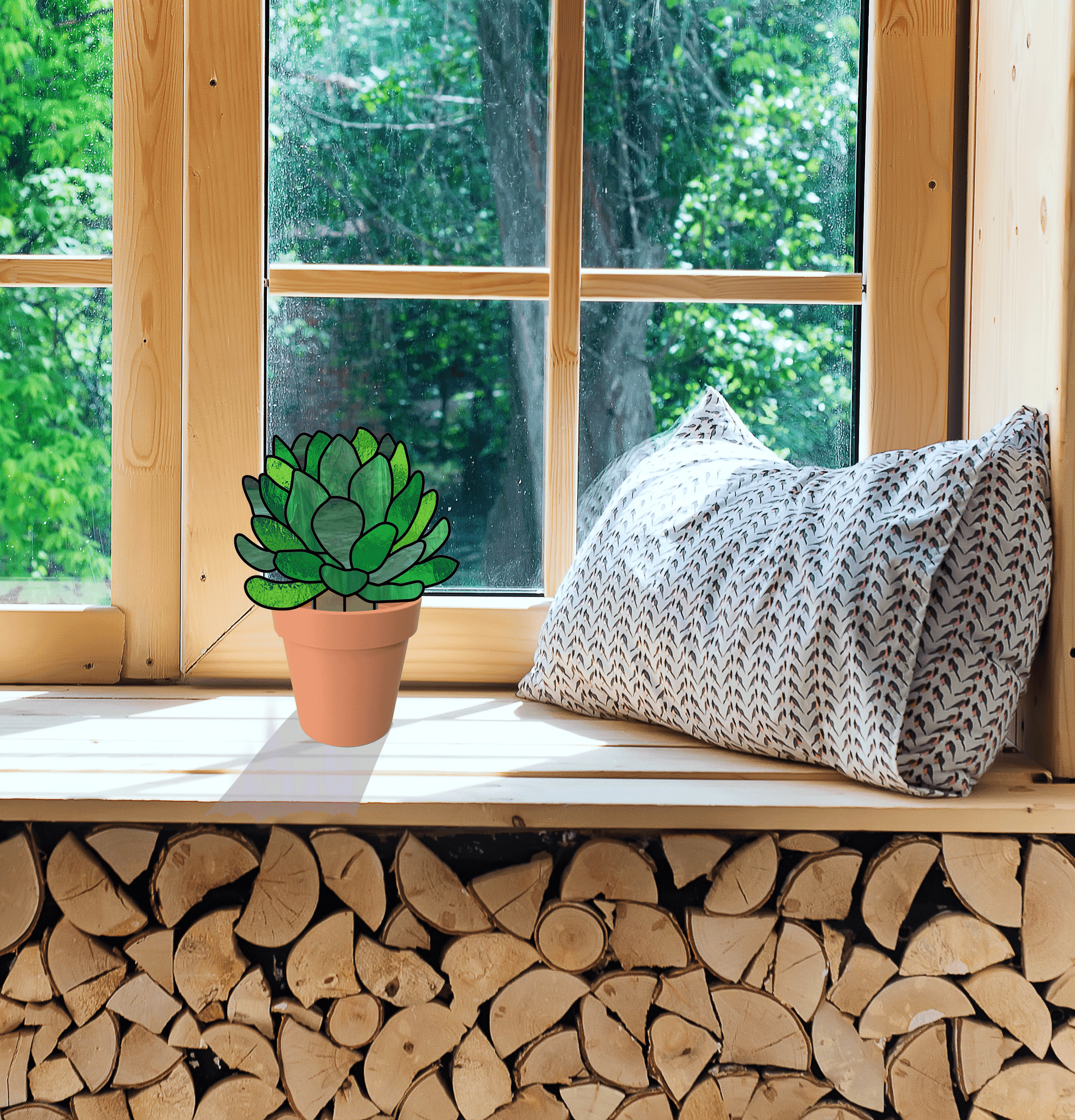 Echeveria Succulent Plant Stem Stained Glass Pattern
