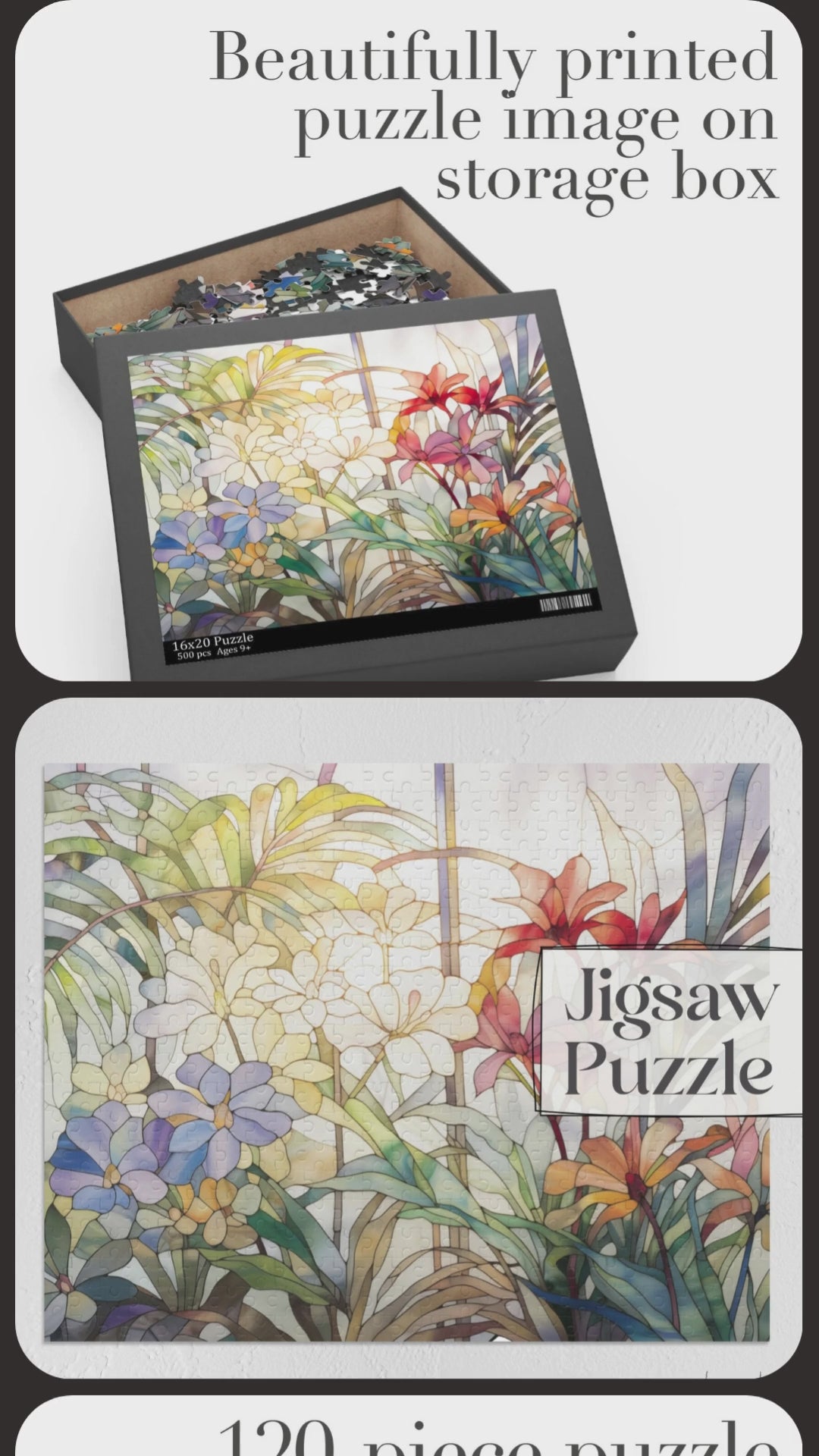 This artist-designed tropical flowers jigsaw puzzle makes a perfect stained glass gift, a great art gift, and a gift for a couple. Gorgeously printed on high-quality chipboard pieces, this puzzle is available in 120, 252, and 500-piece sizes. Each puzzle arrives in a gift-ready box with the puzzle image on the top, making it a great gift for a puzzle lover!
